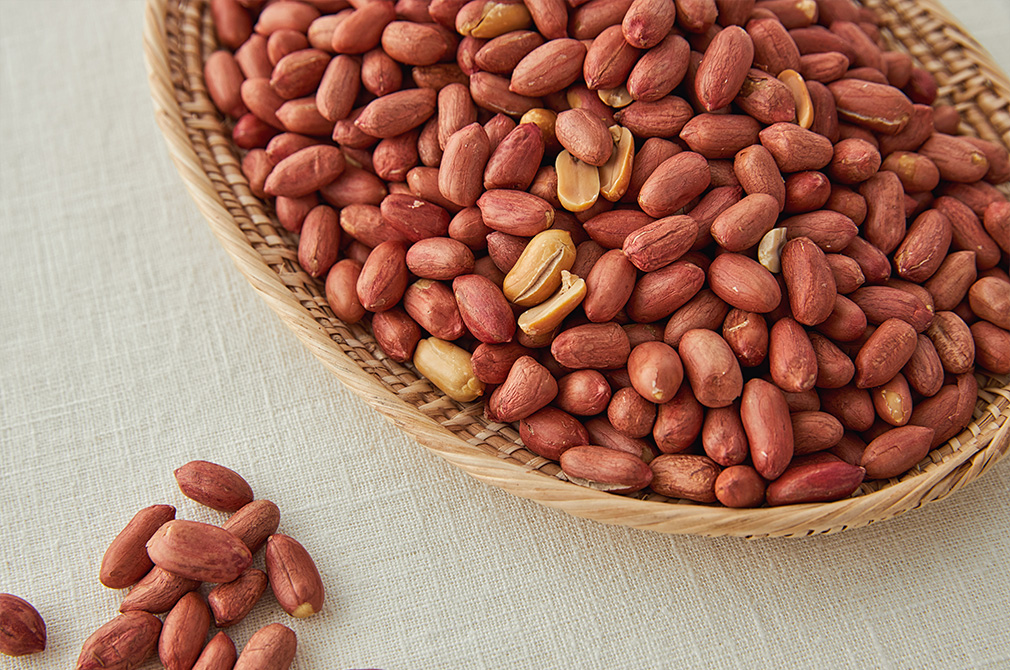 빨간 땅콩의 껍질에는 폴리페놀 등 항산화 성분을 다량 함유하고 있어요. 더운 여름 자외선 및 피부 손상을 억제할 수 있고요. 땅콩에 가지고 있는 비타민 E와 마그네슘, 아연 성분은 피부건강의 향상 및 피부에 미광 효과를 나타나게해다고 합니다.