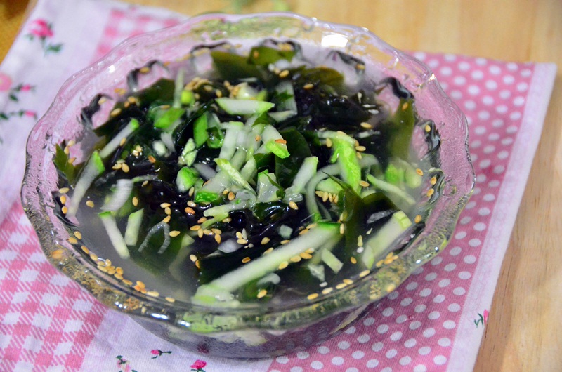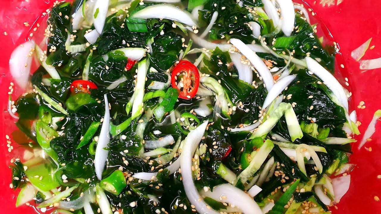 불린 미역에 이런식으로 앞서 밑간을 해서 간이 넉넉히 배도록 해주시면 되기도 합니다. 나중에 채소에서 즙이 나오면서 미역에 간이 배지 않을 수 있다고 합니다.