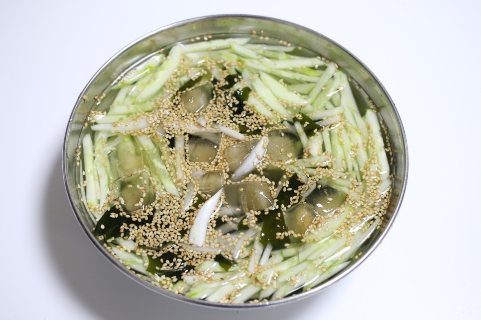여름철 시원하고 상큼한 집반찬인 초간단 오이냉국 황금레시피를 소개해 드리려고 하고요. 오이냉국은 오이와 양파, 식초, 설탕, 소금, 참기름 등으로 단촐하게 제작할 수 있는 냉국이고요. 입맛이 없을 때나 몸이 더울 때 한 그릇 드시면 기분이 개운해지고 속도 시원해집니다.