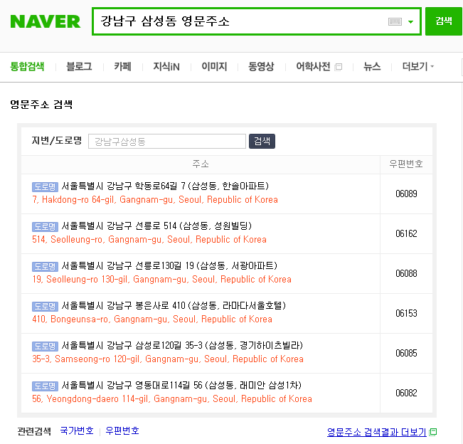 해외 직구로 상품을 매매하는 일이 커지고 과거과 같지않게 해외 여행과 유학 등이 많아지면서 국내의 주소를 영문으로 변환해서 기재해야 될 일이 올리고 있습니다.